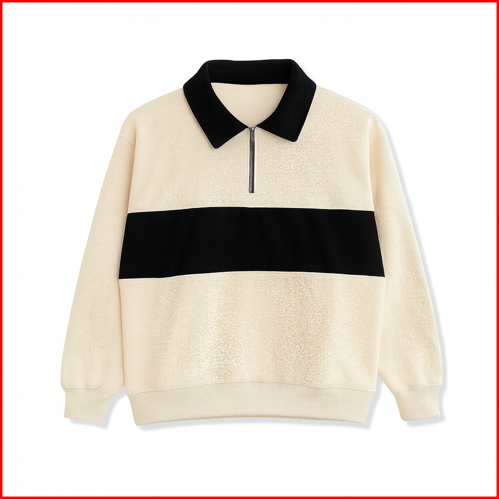 Rugby Half Zipper Twotone Crewneck Jaket Sweater Pria Wanita