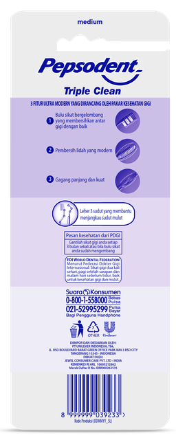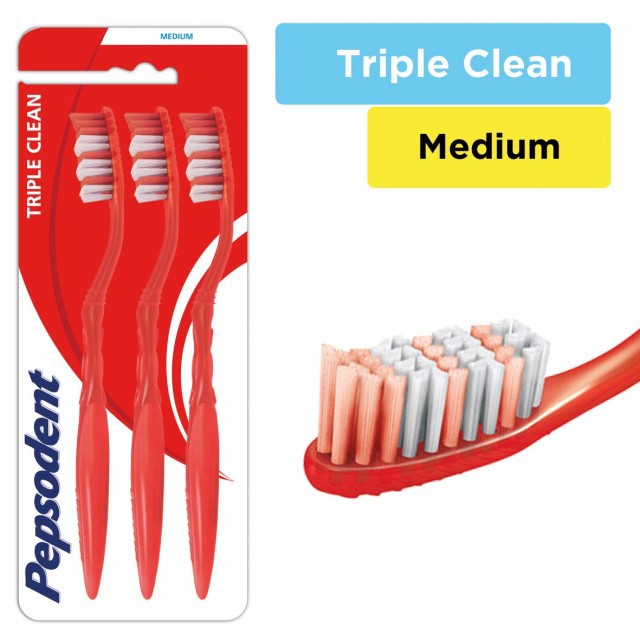 Pepsodent Triple Clean Sikat Gigi Medium Isi 3
