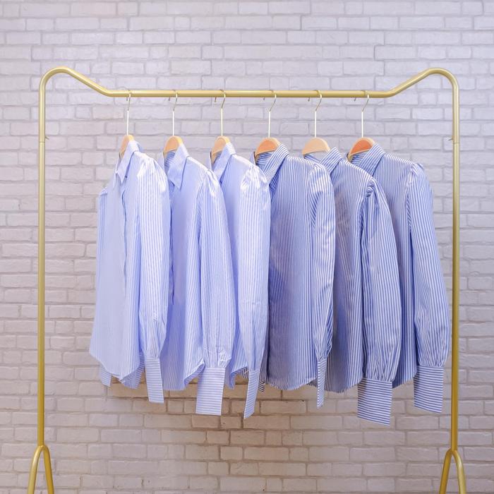 DP 0 NADIN T0P KEMEJA SALUR WANITA KOREAN STYLE BALON KATUN FORMAL NYAMAN ATASAN KERJA KANTOR DEEP BLUE
