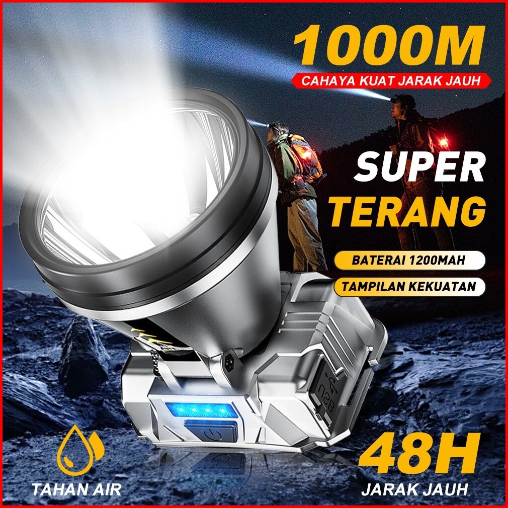 Moketa Senter Kepala Super Terang 1000 500 Watt Outdoor Camping Hiking Waterproof Usb Rechargeable Lampu