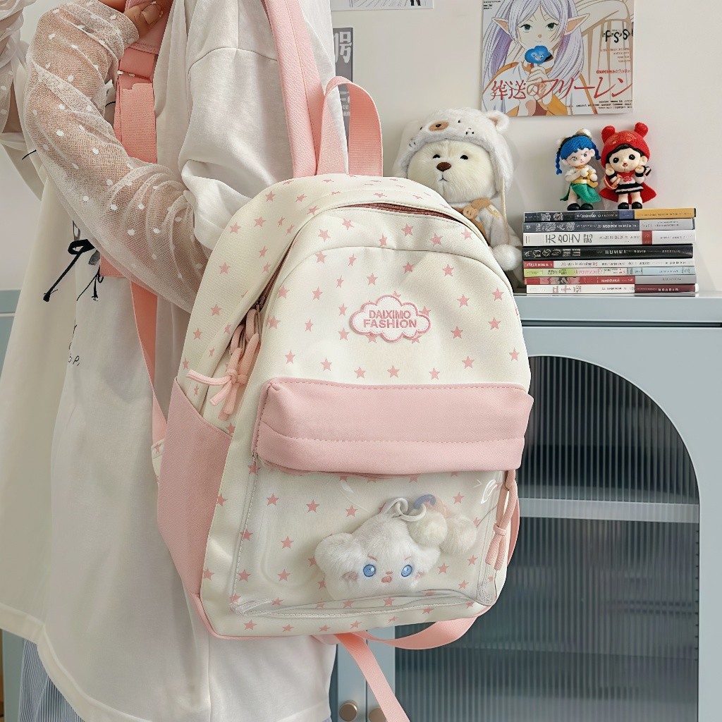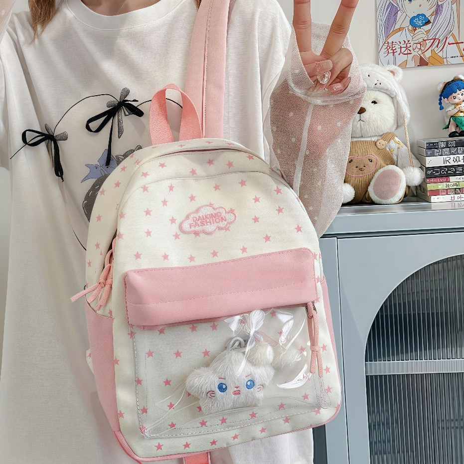 Tas Sekolah Wanita/Ins Pink Tas Ransel /Warna Tabrakan Cantik Backpack/Fashion Korea Tas Bahu/Kuliah Style Tas Sekolah/Bernilai Tinggi Tas
