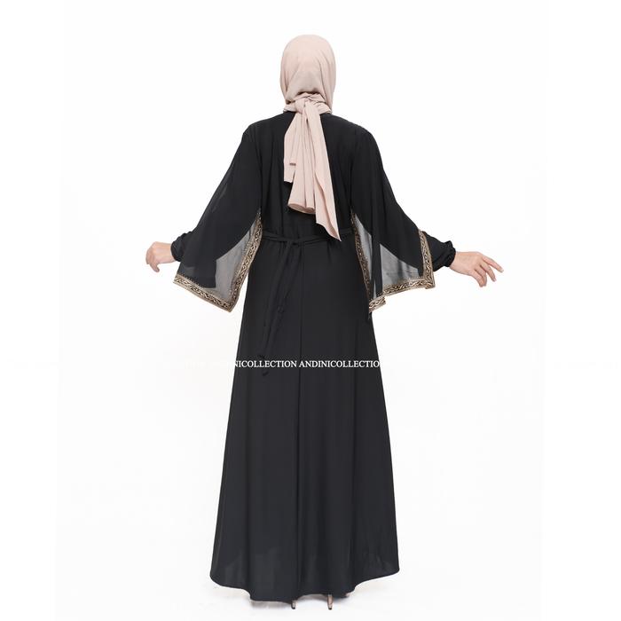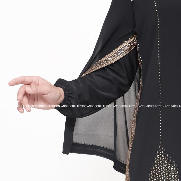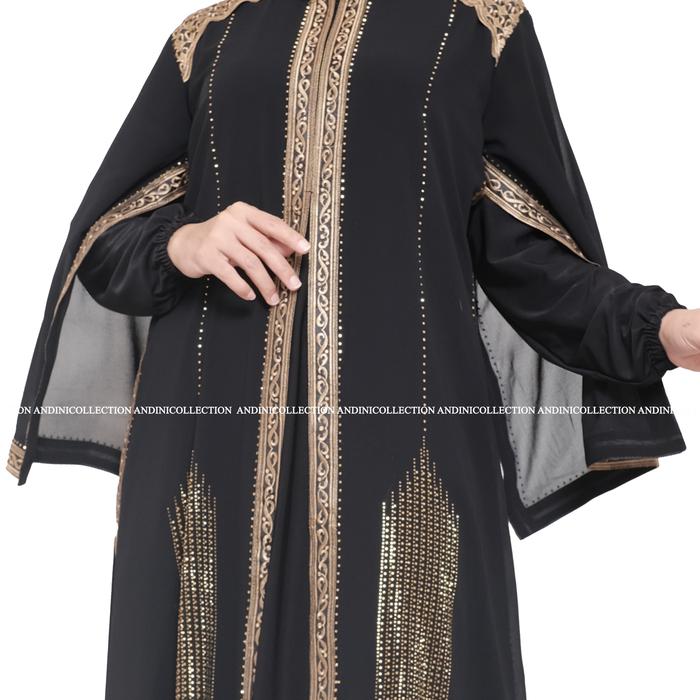 DP 0 ABAYA TURKEY 150 GAMIS LEBARAN WANITA HITAM DEWASA MUSLIM BORDIR MEWAH FULL HITAM M