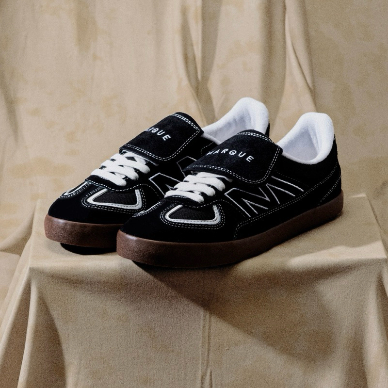 MARQUE.CO ‘PANSER Series’ Black Hitam Gumsole - Sepatu Sneakers Pria & Wanita Unisex dengan Bahan Suede & Canvas dengan Tounge