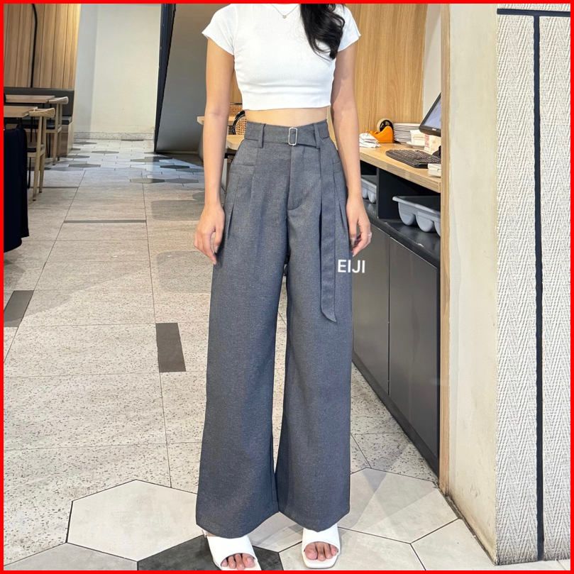 Obi Pants - Celana Highwaist Trousers Loose Pants - Celana Kulot Kantor Formal Anti Kusut Casual