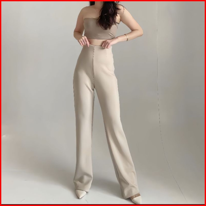 Flare Pants Highwaist Celana Kulot Cutbray Bahan Scuba Premium Bb 40-75 Kg