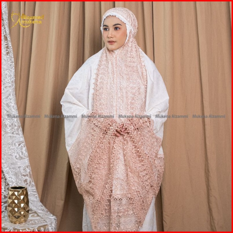 Mukena Dewasa Ameera Bahan Katun Foil Renda Mewah Full
