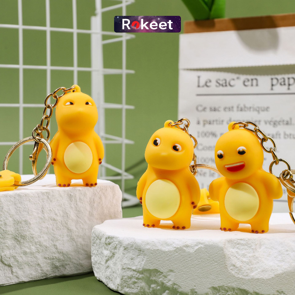 Rokeet Gantungan Kunci Keychain Karakter Kartun Dino Kuning Nailong Hiasan Tas Lucu