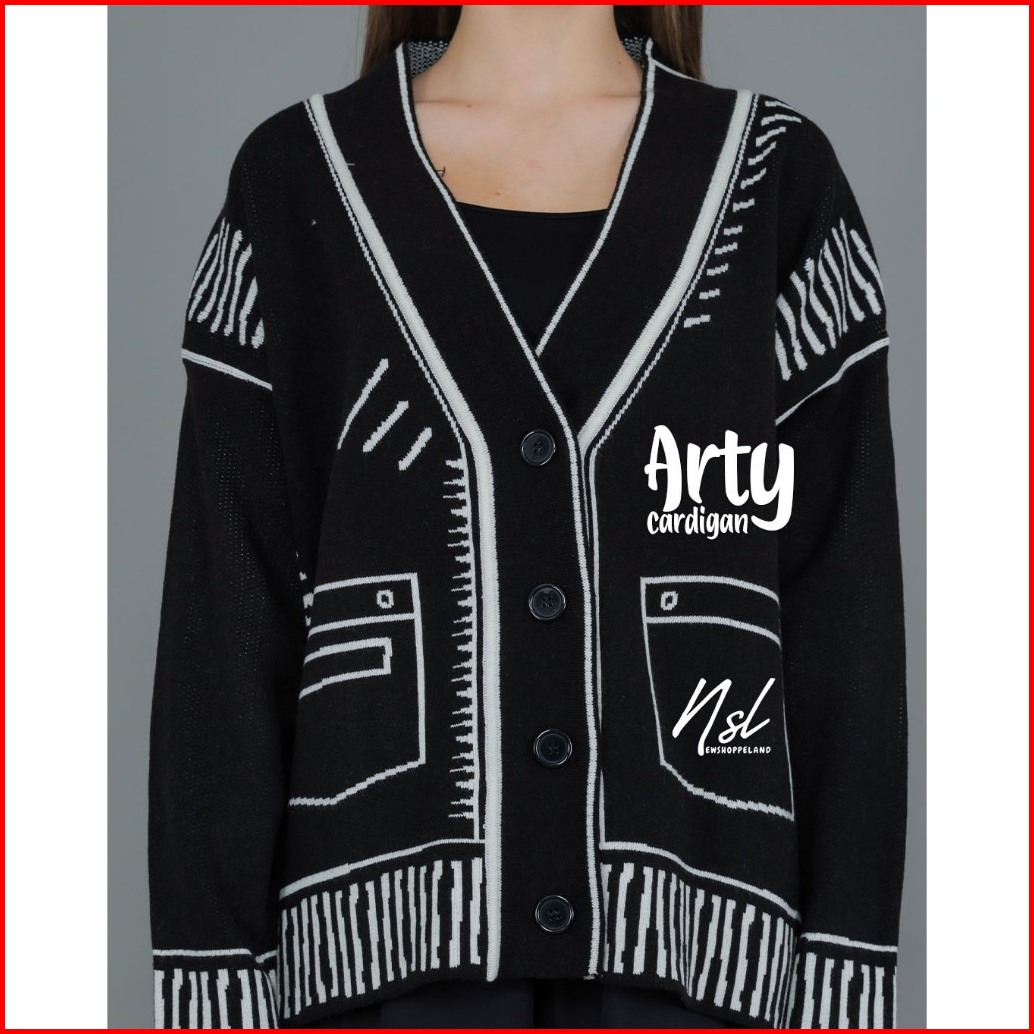 Newshoppeland - Arty Sketch Cartoon Cardigan Oversize Premium