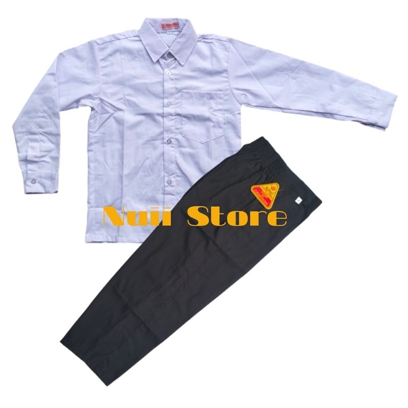 Setelan Seragam Sekolah Sd/Mi BAJU PUTIH POLOS LENGAN PANJANG DAN CELANA PANJANG HITAM untuk Anak Laki-laki Kelas 1-6