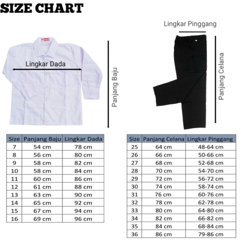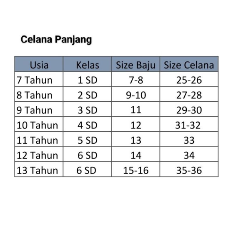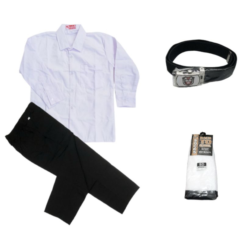 Setelan Seragam Sekolah MI Laki-laki Hitam Putih Lengan Panjang Celana Panjang Super Komplit Kelas 1-6