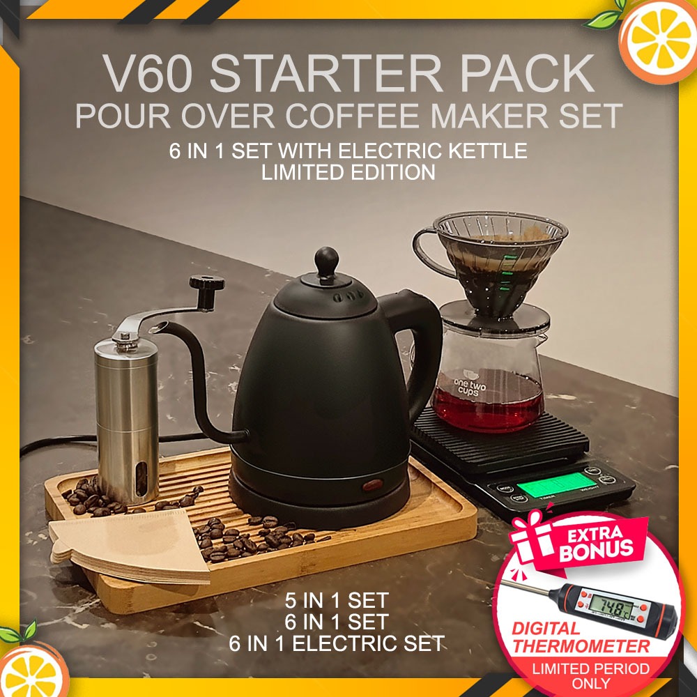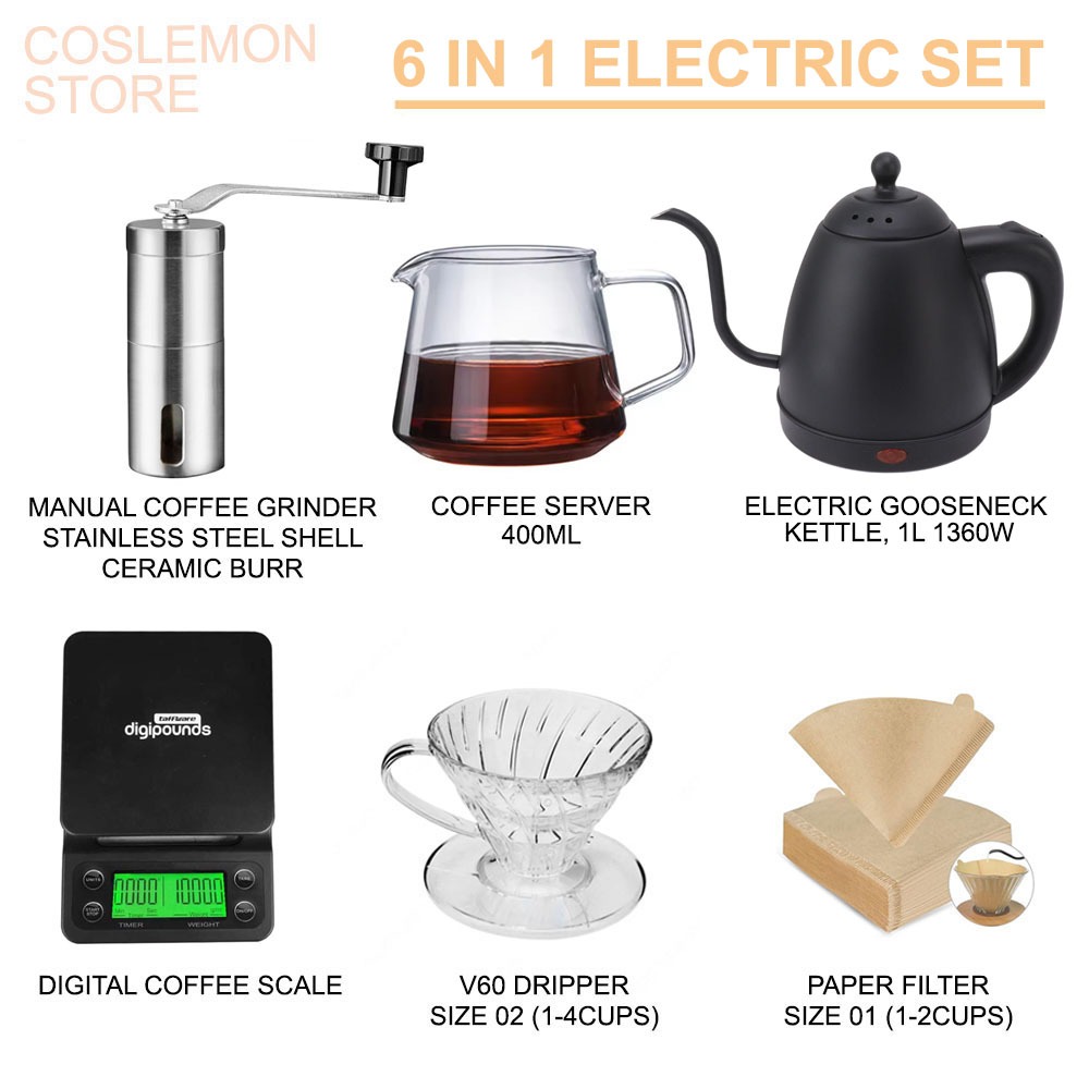 coffee maker set 6 in 1 with Electric Kettle / paket alat kopi manual V60 untuk Pemula, penyaring kopi, angsa kettle lis