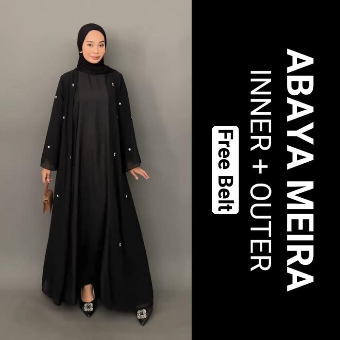 DP 0 ABAYA MEIRA INNER SHAKILA OUTER CERUTY FREE BELT PAYET MUTIARA GAMIS WANITA MUSLIMAH NYAMAN HIJAU