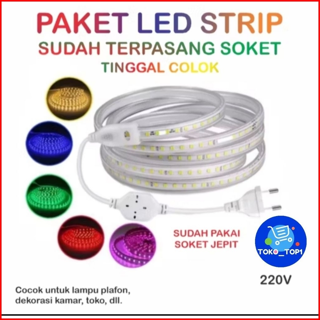 Paket Lampu Led Strip Selang 220v Lengkap Tinggal Colok 5050 Lampu Hias Cafe Led Strip Siap Pakai