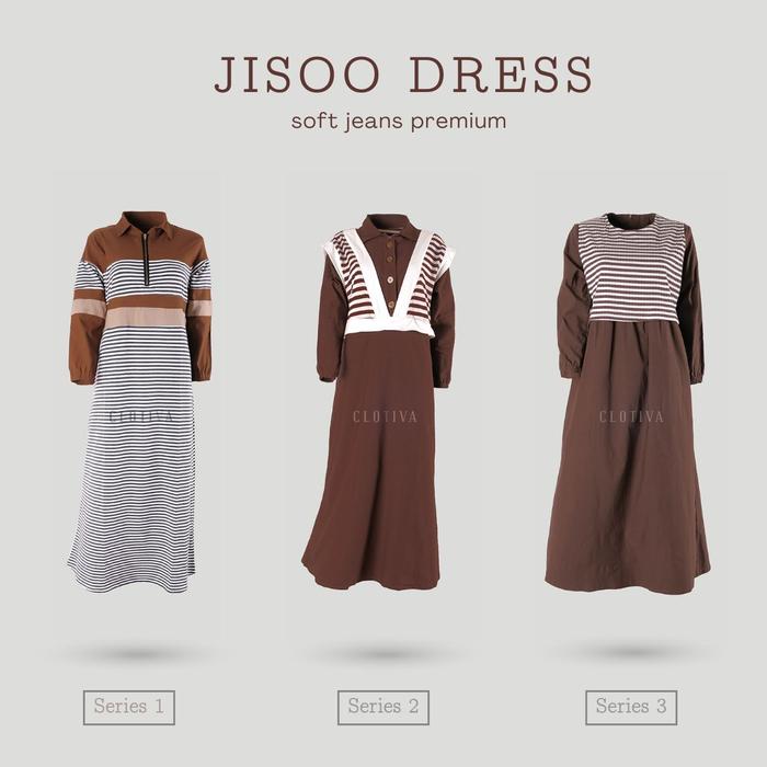 DP 0 JISOO DRESS SOFT JEANS CASUAL LEMBUT NYAMAN PANJANG GAUN MELAR S1 BROWN