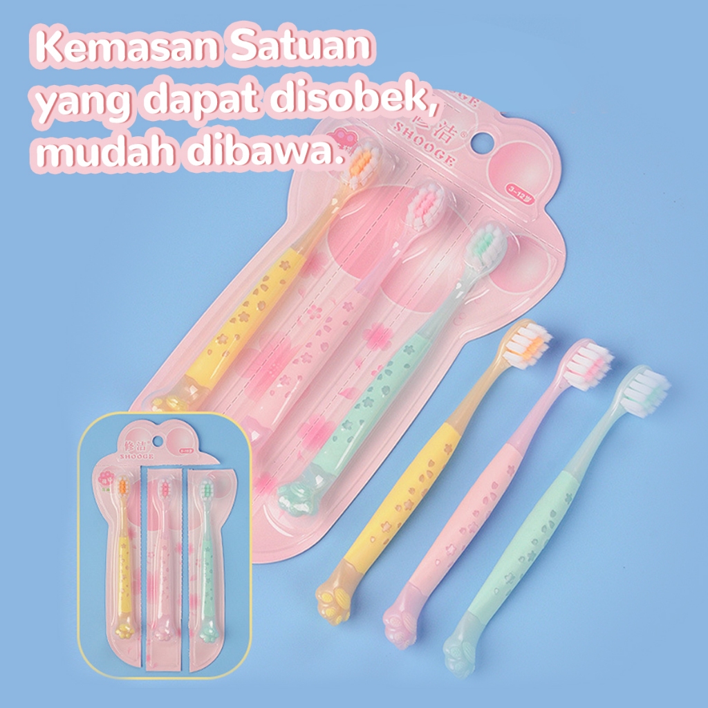 isi 3 - Sikat Gigi Anak Bentuk Kucing Bulu Ultra Usia 3-12 Tahun Soft Children Training Toothbrush