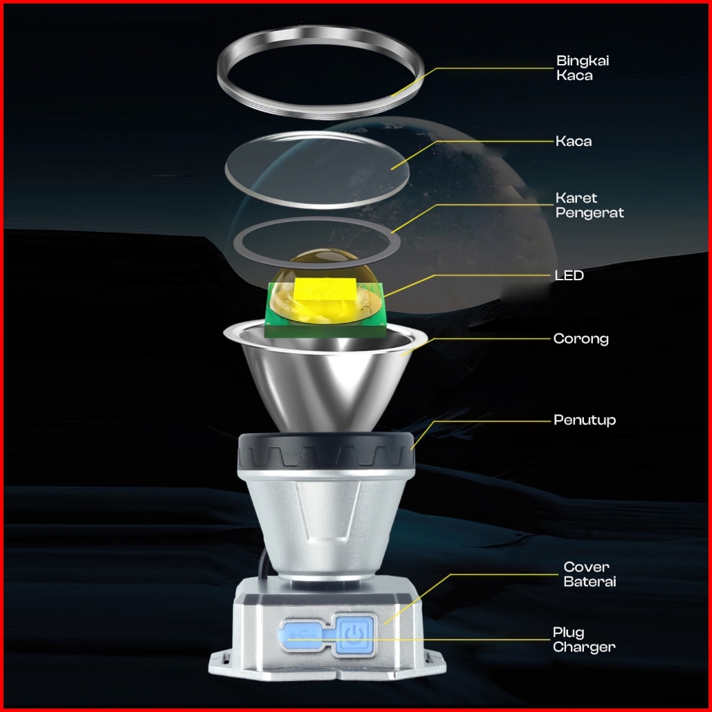 Suksestech Senter Cas Kepala Headlamp Mini Led 3 Mode Waterproof Lampu Reachargeable Kt 8820