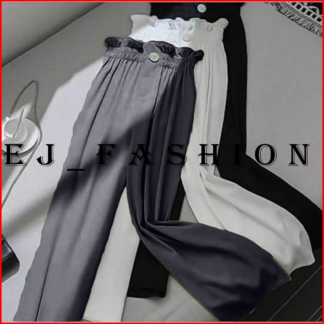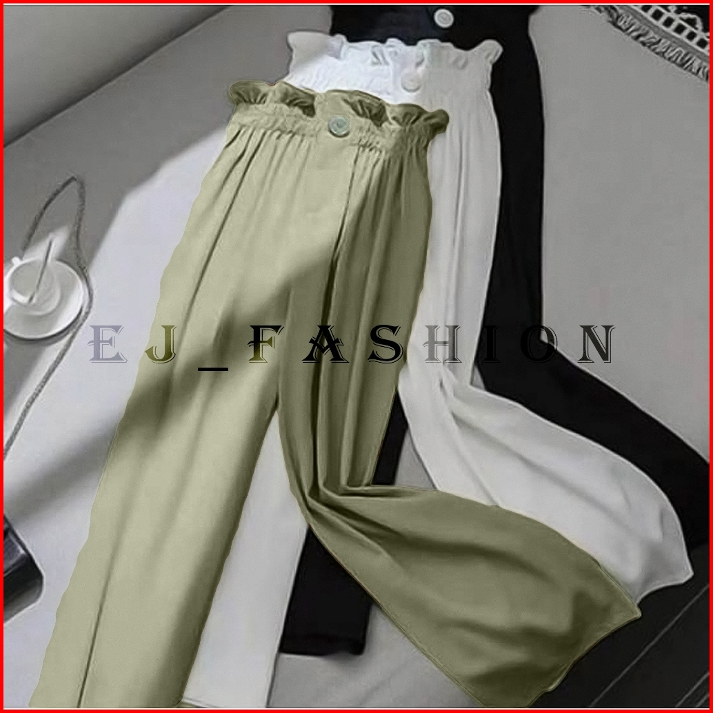 Ej Fashion Celana Wanita Kulot Panjang Highwaist Kerut Susun Kancing 1 Terbaru 2024 Kekinian Style