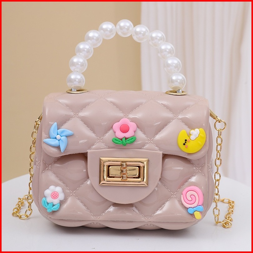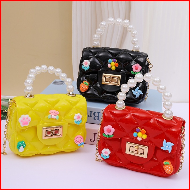 Elf1497 Tas Jelly Anak Mini Tas Jelly Mutiara Tas Selempang Glossy Gaya Korea Fashionable