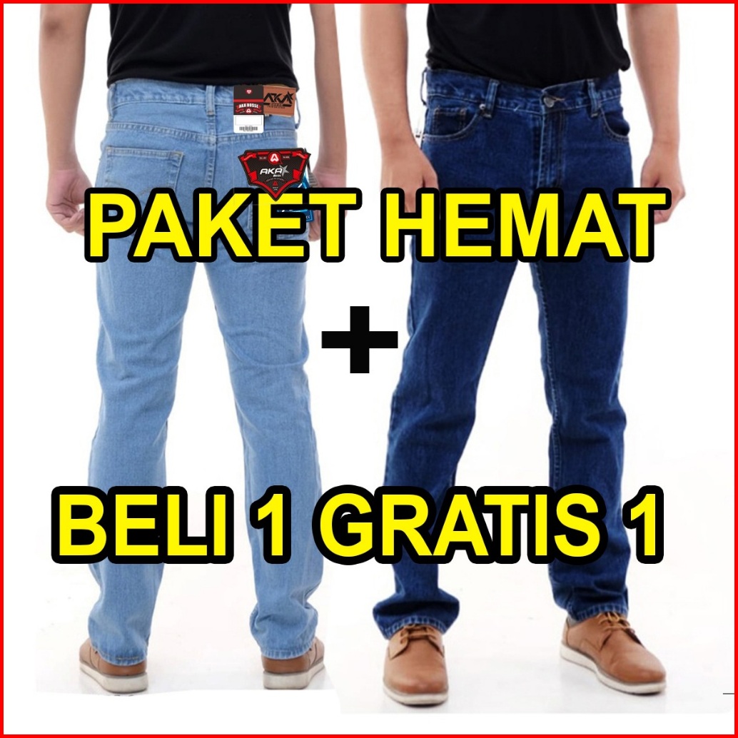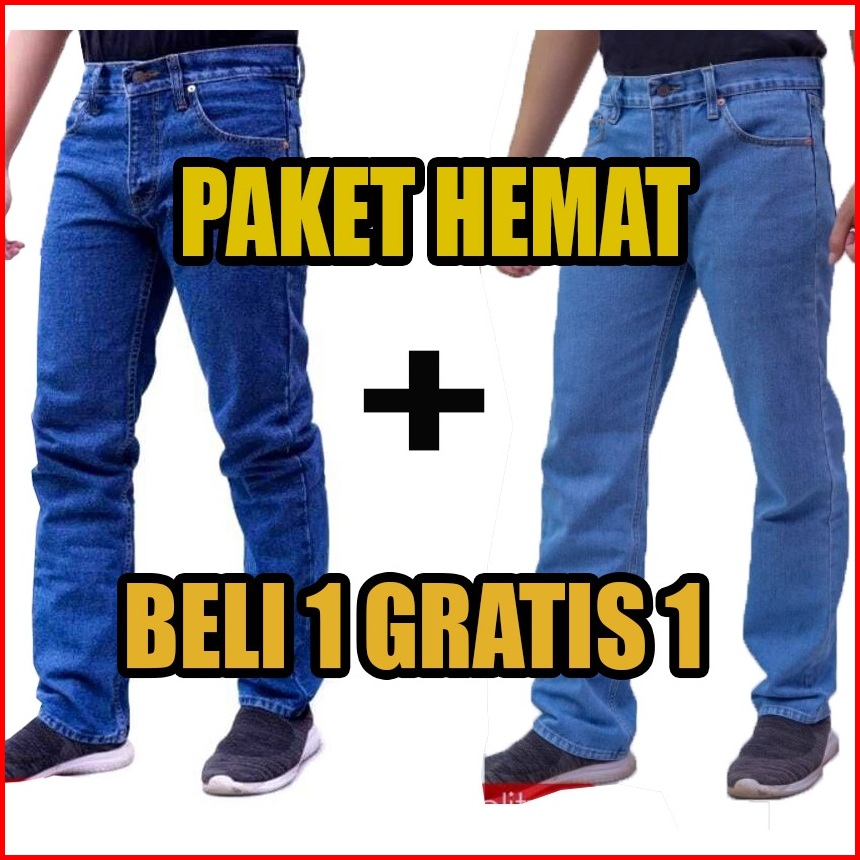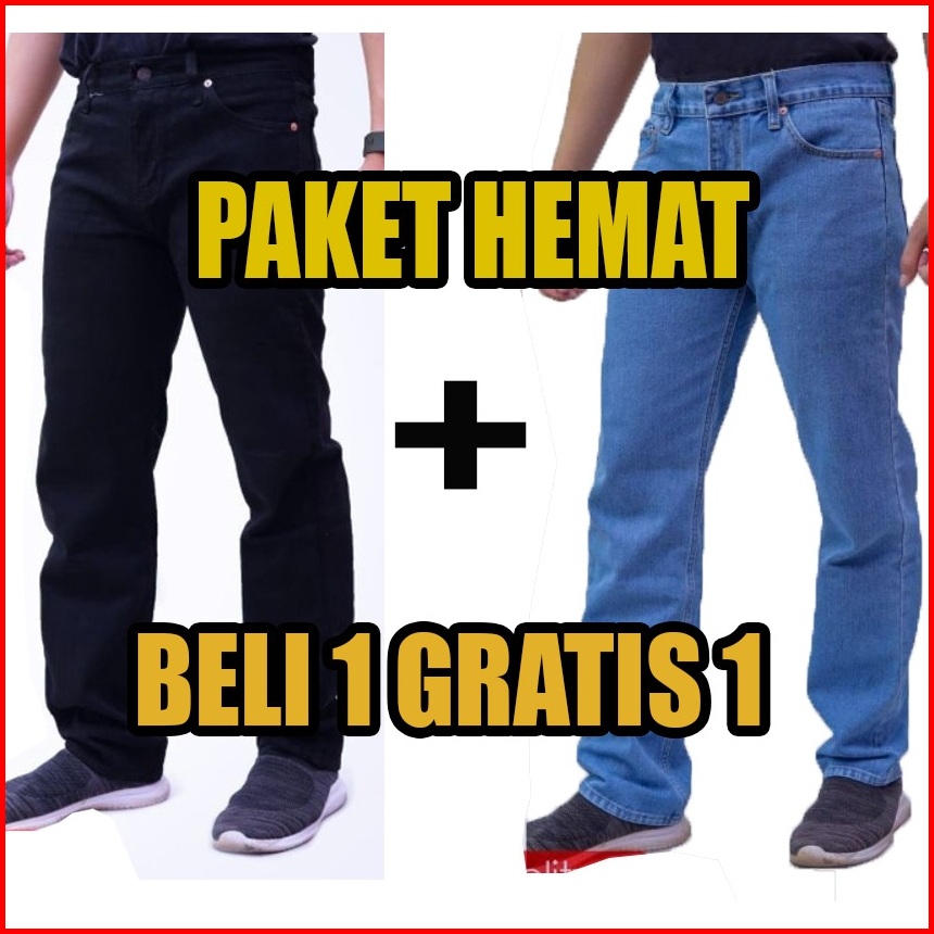Cuci Gudang Beli 1 Gratis 1 Jeans Standar Warna Hitam Navi Blitz