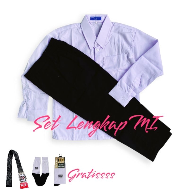 Setelan Seragam Sekolah SD SMP MI MTS PUTIH HITAM LAKI BAJU PANJANG POLOS CELANA PANJANG HITAM COWOK