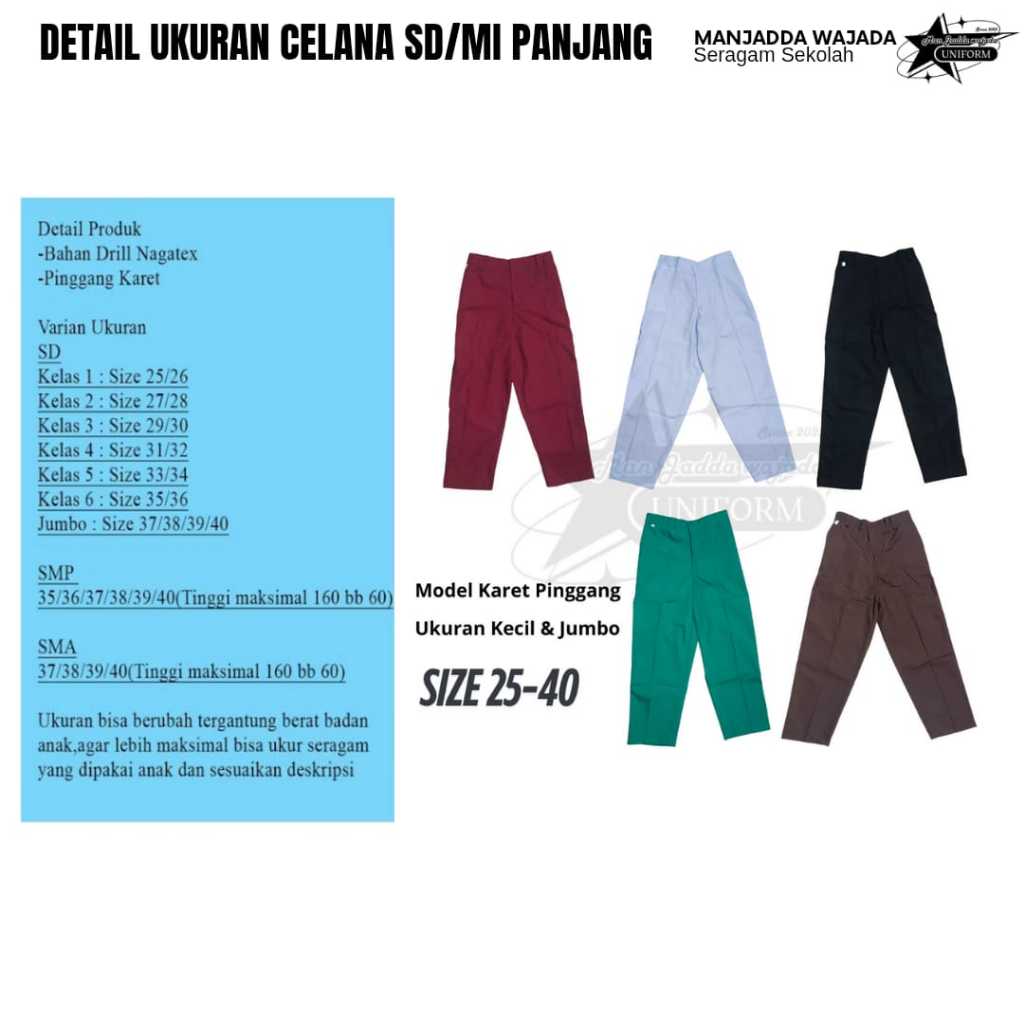 Celana Sekolah SD Anak Laki Celana Seragam SD Panjang Merah Putih Hitam Hijau Coklat Pramuka SD Laki