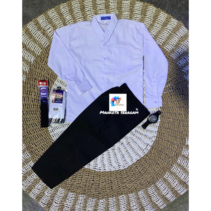 Setelan Seragam Sekolah SD MI MTS PUTIH HITAM LAKI BAJU PANJANG POLOS CELANA PANJANG HITAM