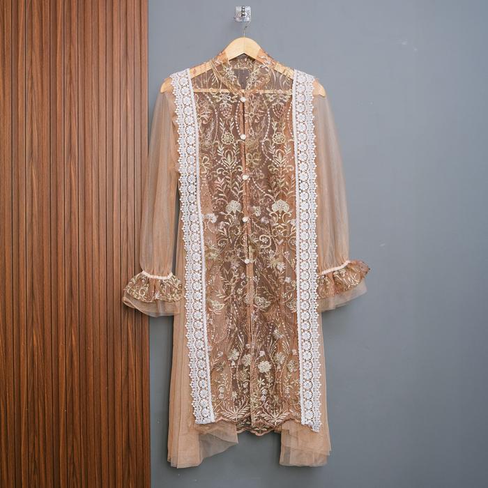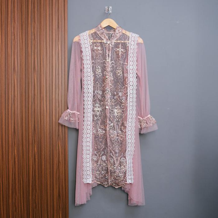 DP 0 MALIAA OUTER BROKAT HANYA OUTER BRUKAT DRESS GAUN CASUAL FORMAL LEBARAN HARI RAYA KONDANGAN OUTER DUSTY PINK