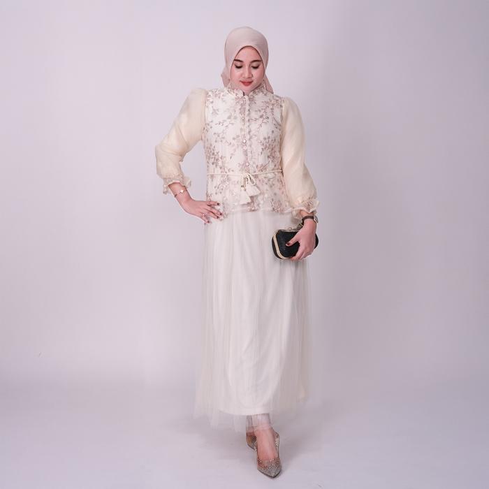 DP 0 MELLY DRESS BROKAT INNER + OUTER MEWAH PUTIH