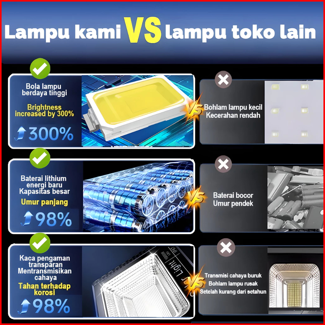 Beli 1 Gratis 1lampu Tenaga Surya Led 2000w Solar Light Ip67 Lampu Sorot Emergency Waterproof Lampu Sorot Solar Outdoor