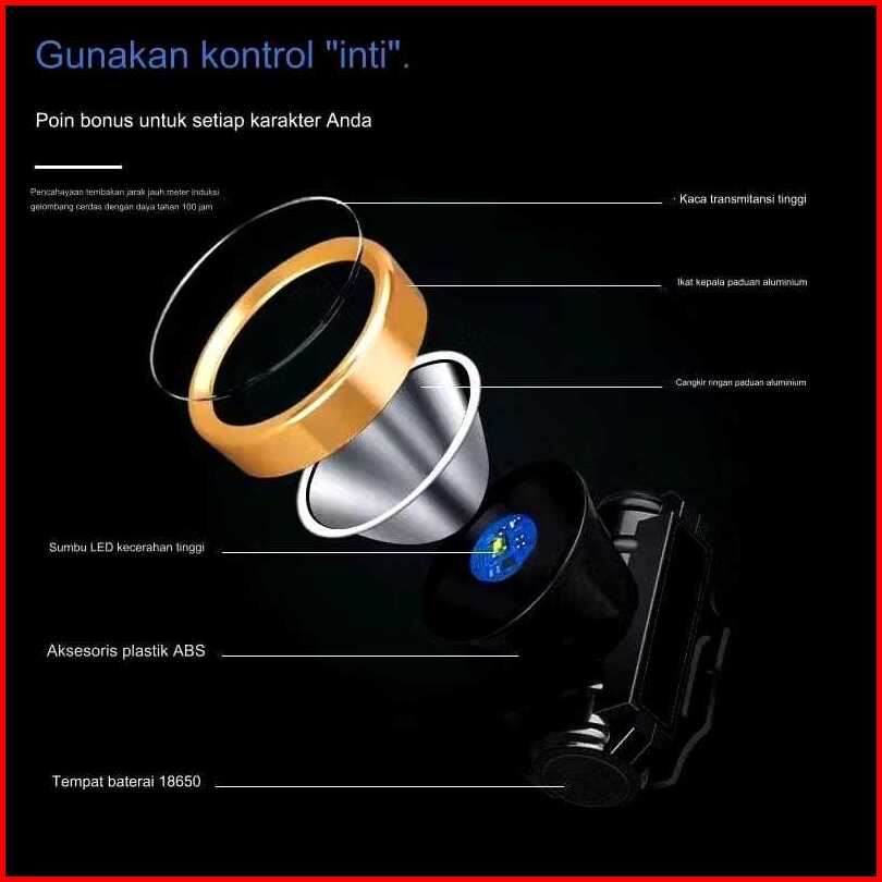 Gs8 Lampu Senter Kepala 30 Watt Lampu Rechargeable Lithium Battery Headlights