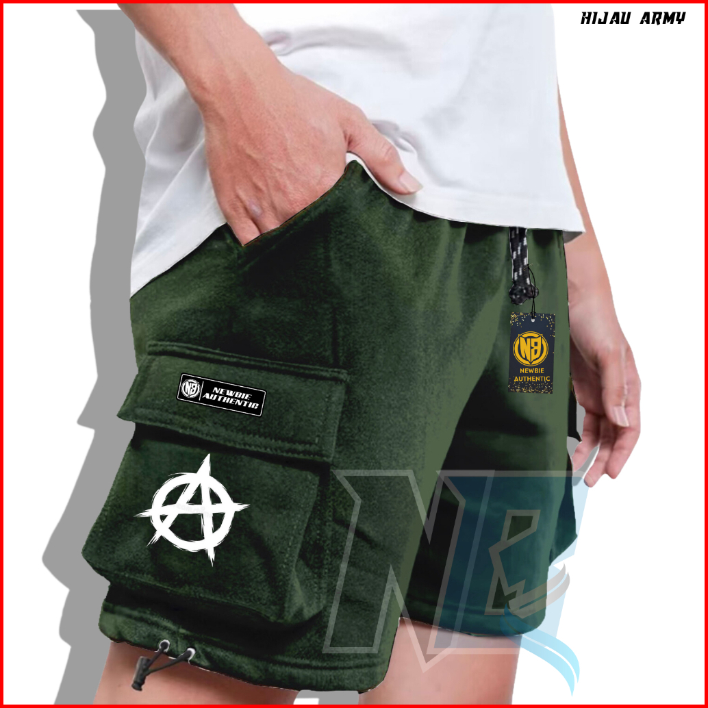 Celana Cargo Pendek Bahan Fleece Premium Warna Hijau Army Banyak Sablon Logo A Brotshotd Kargo Distro Santai Terbaru Dan