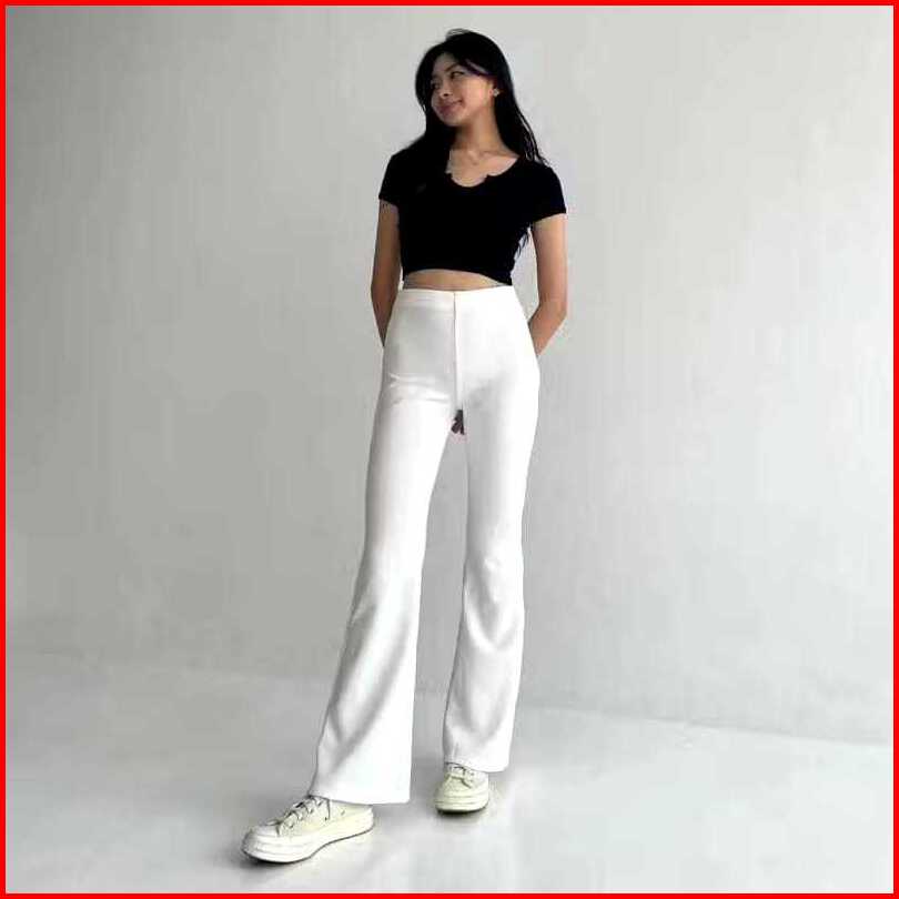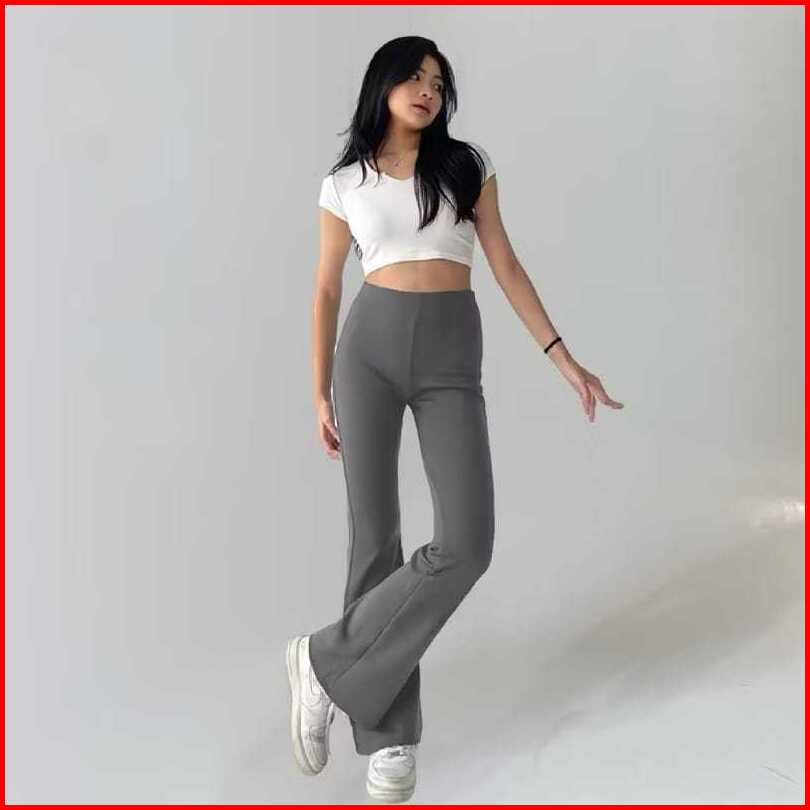 Syakira - Evelyn Flare Pants Highwaist Cutbray Scuba Premium - Celana Adem Melar Panjang