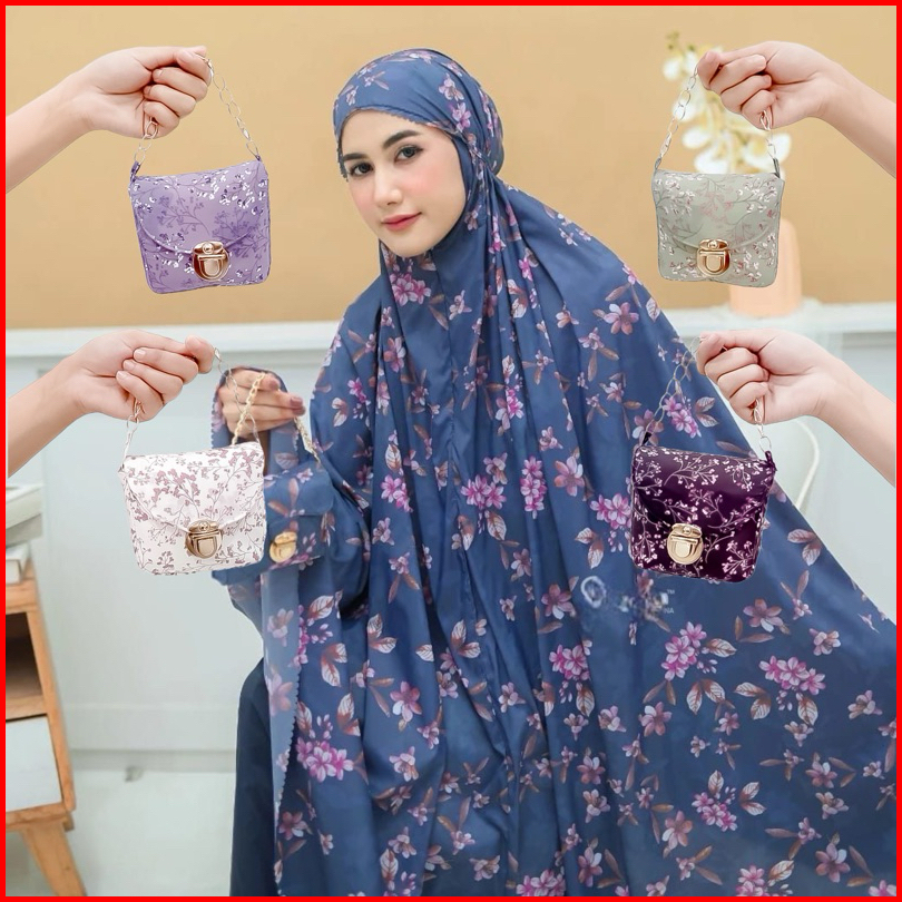 Mukena Traveling Laura Mini Motip Parasut Korea Premium Tas Mewah