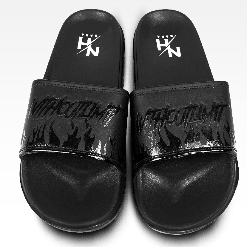NAHA - Sandal Slop Anak Pria Wanita Distro Karet Api Fullblack Size 31 - 43