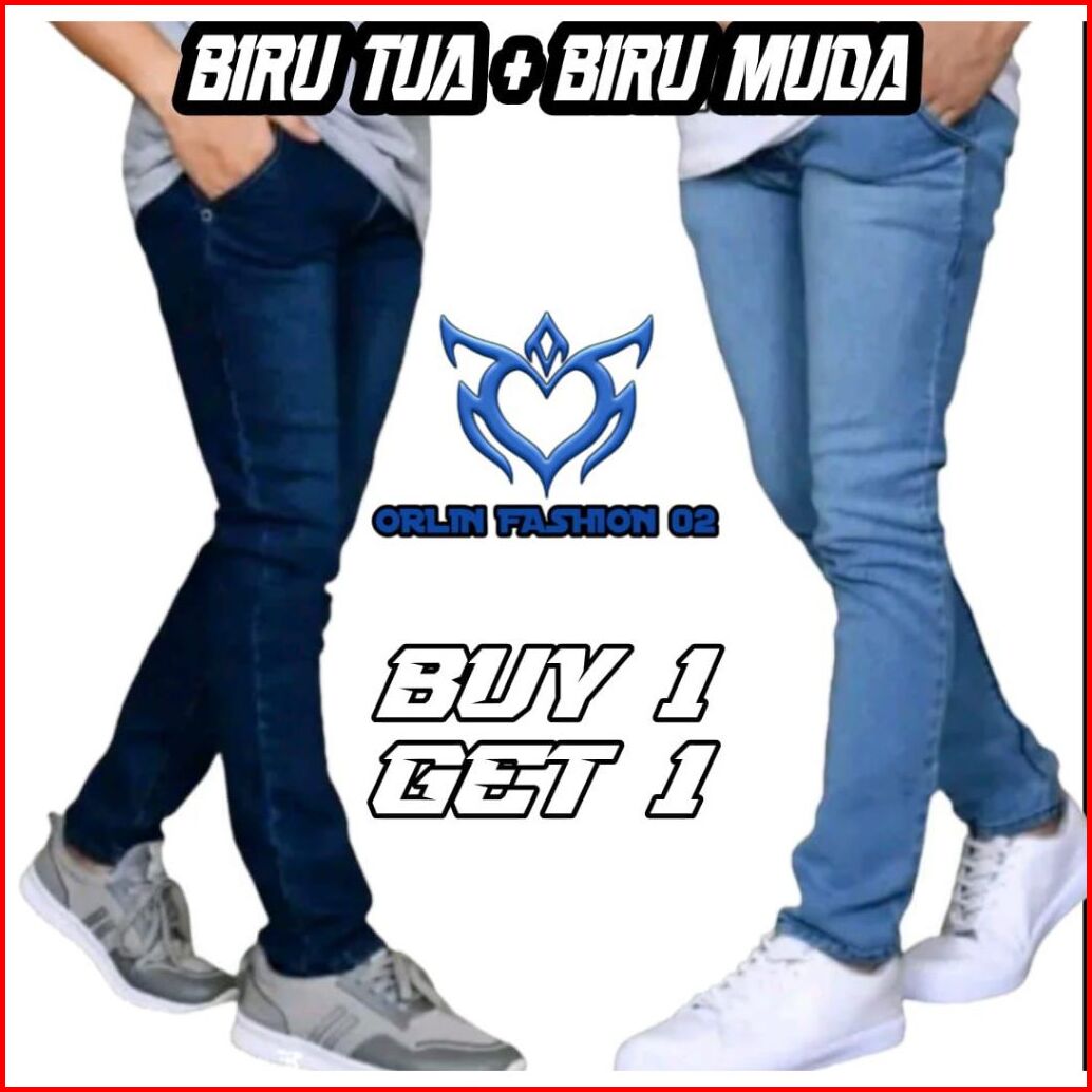 Beli 1 Gratis 1 Buy One Get One Celana Jeans Pencil Slimfit Panjang Pria Kekinian