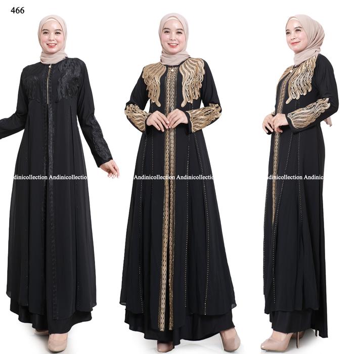 DP 0 ABAYA HITAM TURKEY 466 GAMIS WANITA HITAM DRESS MAXI REMAJA MUSLIM BORDIR MEWAH HITAM M