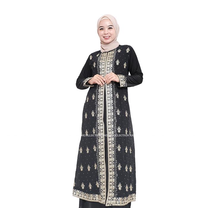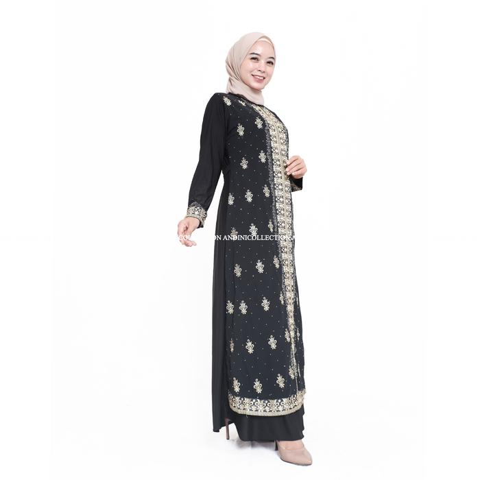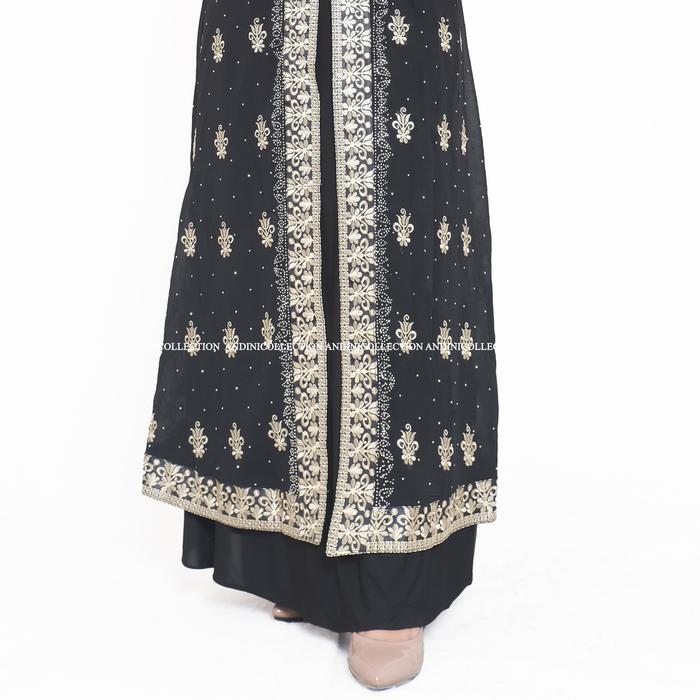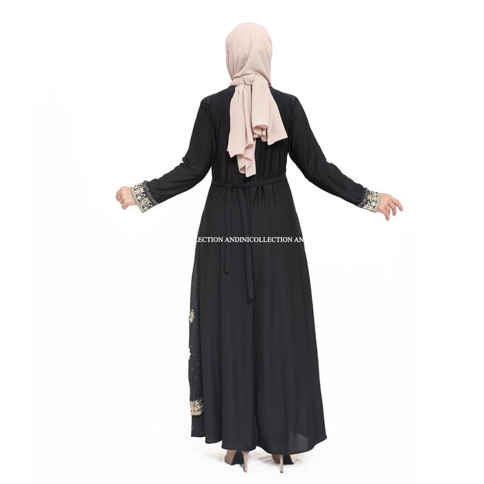DP 0 ABAYA TURKEY 444 AMARTA HITAM PUTIH DEWASA MUSLIM BORDIR DAN PAYET MEWAH HITAM M