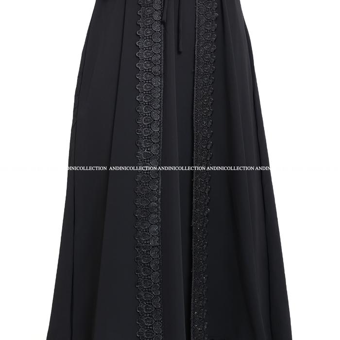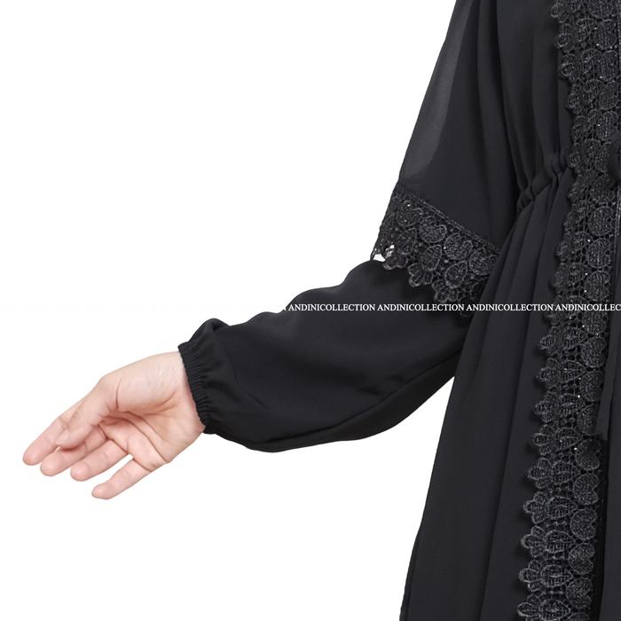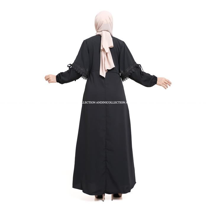 DP 0 ABAYA MAXI 453 GAMIS LEBARAN WANITA DEWASA UMROH HITAM RENDA MUSLIMAH FULL HITAM M