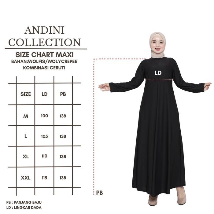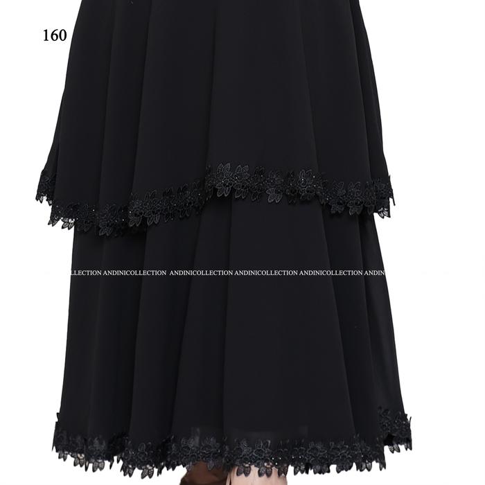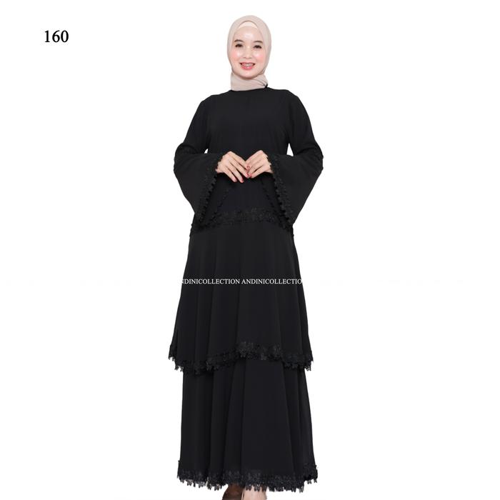 DP 0 ABAYA MAXI 160 GAMIS WANITA KOMBINASI CERUTI MEWAH HITAM RENDA FULL HITAM M