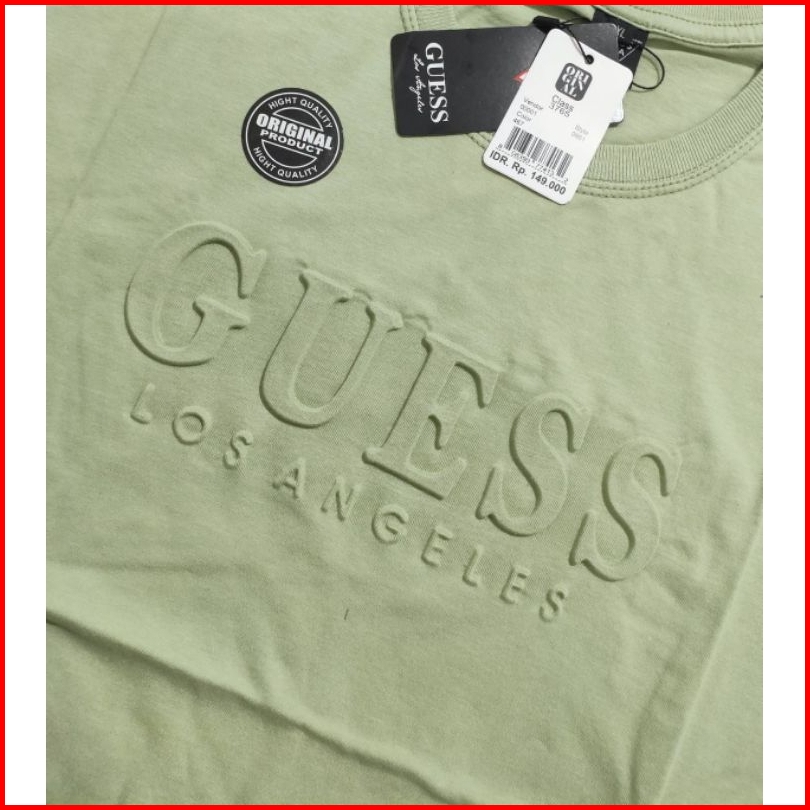 Baju Kaos Distro Guess Font Embossed M L Xl