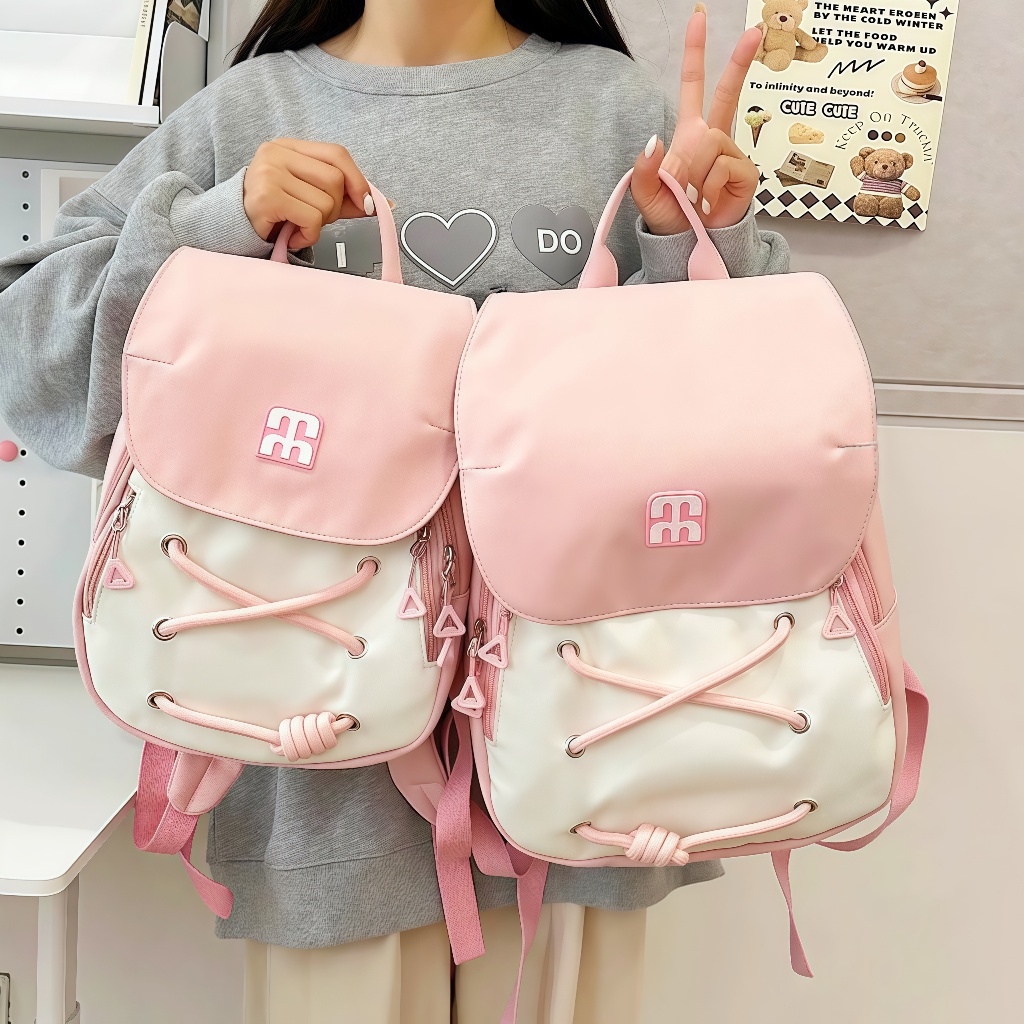 【Kapasitas Besar】Lucu Pink Tas Ransel Wanita Tahan Air Bahan Versi Korea Dari ransel serbaguna Segar Gadis Fashion Kuliah tas sekolah