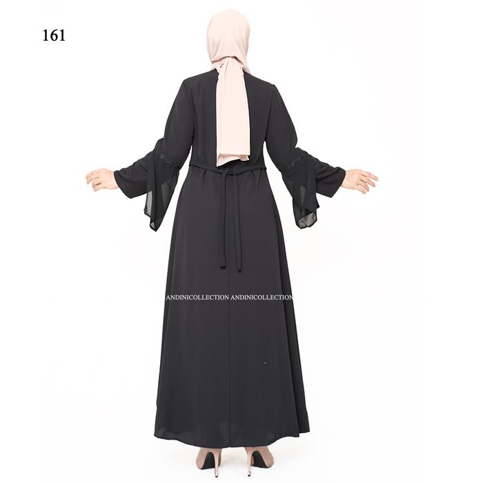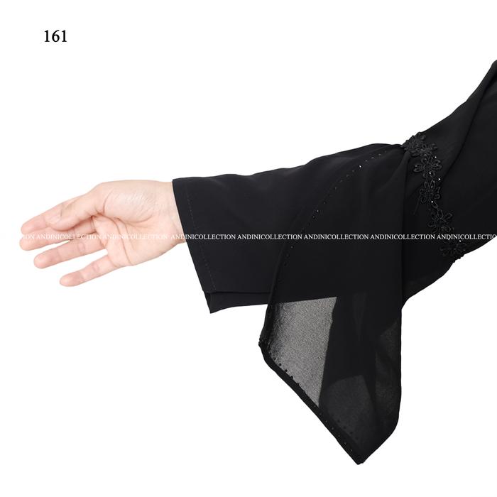 DP 0 ABAYA MAXI 161 JETBLACK UMROH HITAM RENDA BORDIR DEWASA MUSLIMAH KOMBINASI CERUTI FULL HITAM M