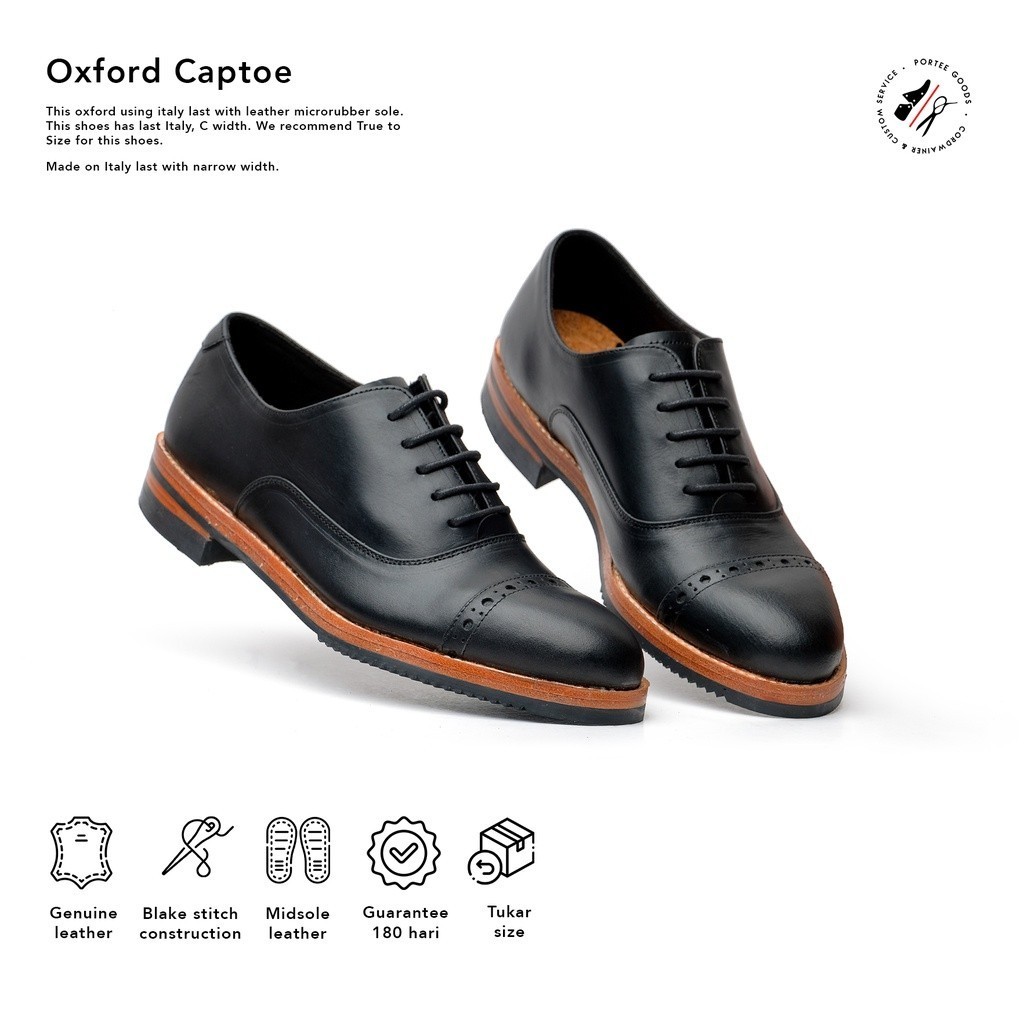 Portee Goods Sepatu Kulit Kerja Pria Oxford Captoe Hitam