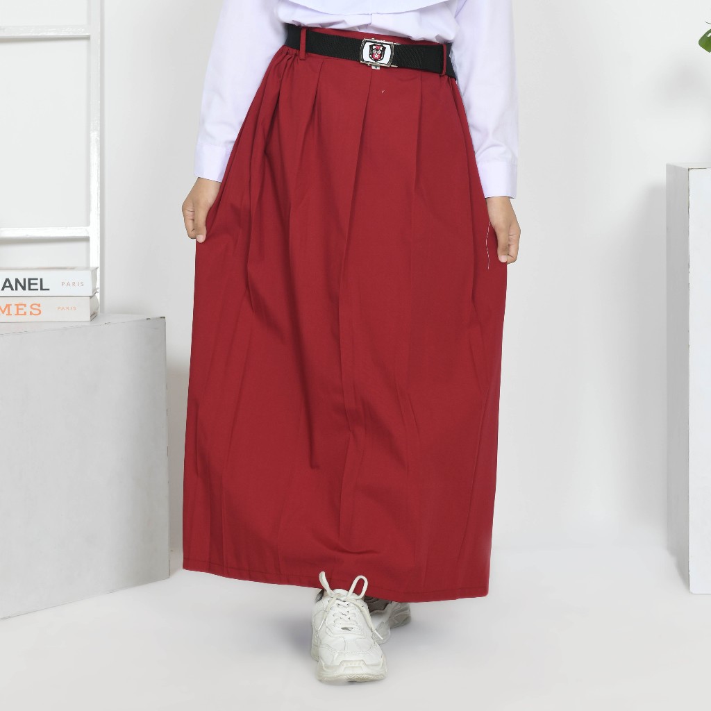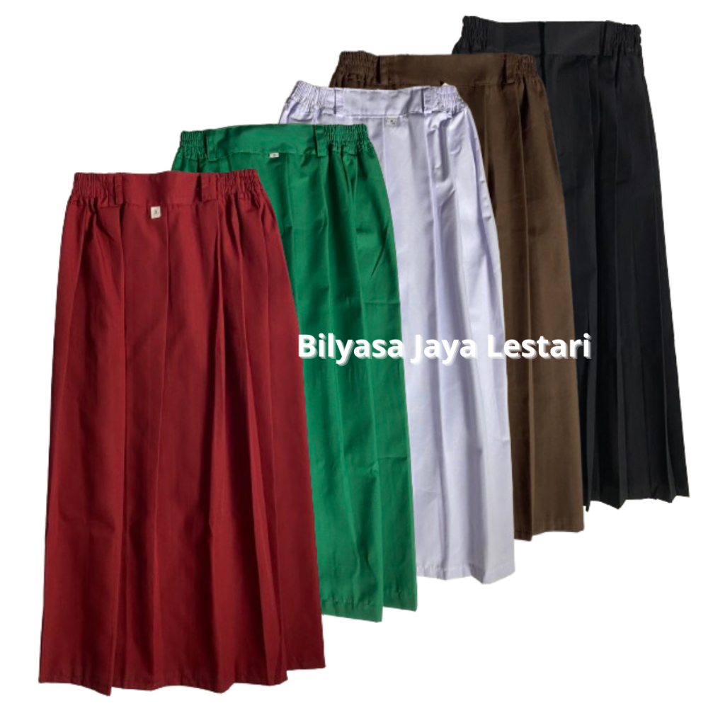 Seragam Sekolah SD Madrasah SMP SMA Rok Rempel Panjang Anak Perempuan Pinggang Karet Warna Hitam Putih Pramuka Coklat Me