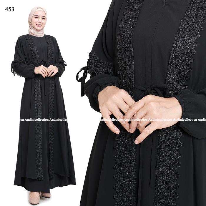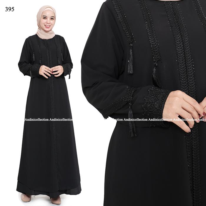 DP 0 ABAYA HITAM PREMIUM GAMIS SYARI MUSLIMAH REMAJA UNTUK UMROH KAJIAN LEBARAN KOMBINASI PAYET RENDA ELEGAN MODEL 380 395 453 380 FULL HITAM M