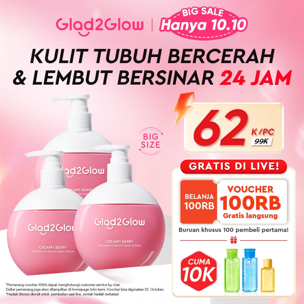 [Mall] Glad2Glow Bright & Moist Body Serum Series | Body Cream Body Lotion Brighten Moist & Smooth Pemutih Badan Body