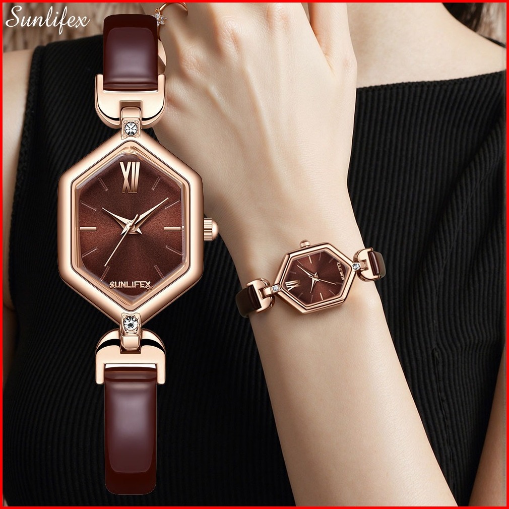 Sunlifex Jam Tangan Wanita Anti Air Kuarsa Elegan Tali Kulit Jam Tangan Cewek Original 5995