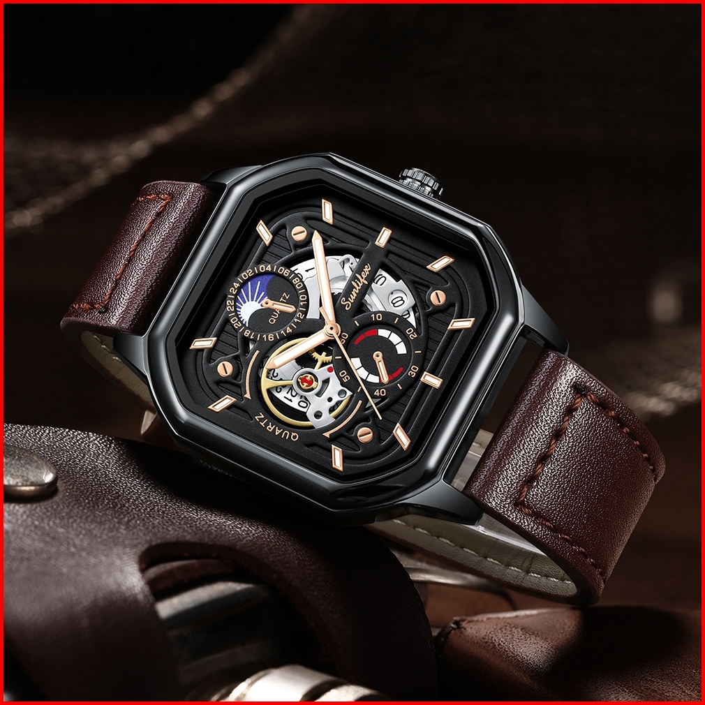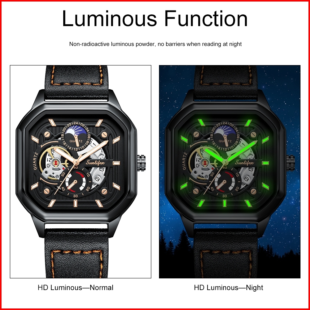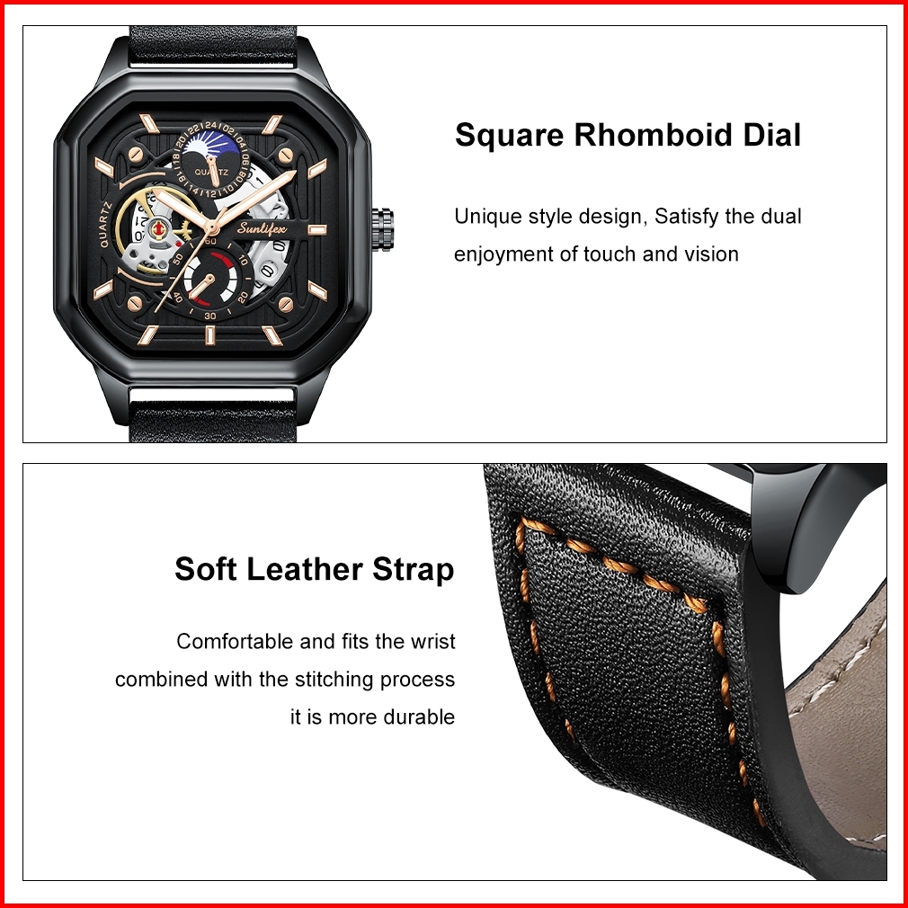 Sunlifex Jam Tangan Pria Original Anti Air Kuarsa Mode Olahraga Tali Kulit Jam Tangan Cowok