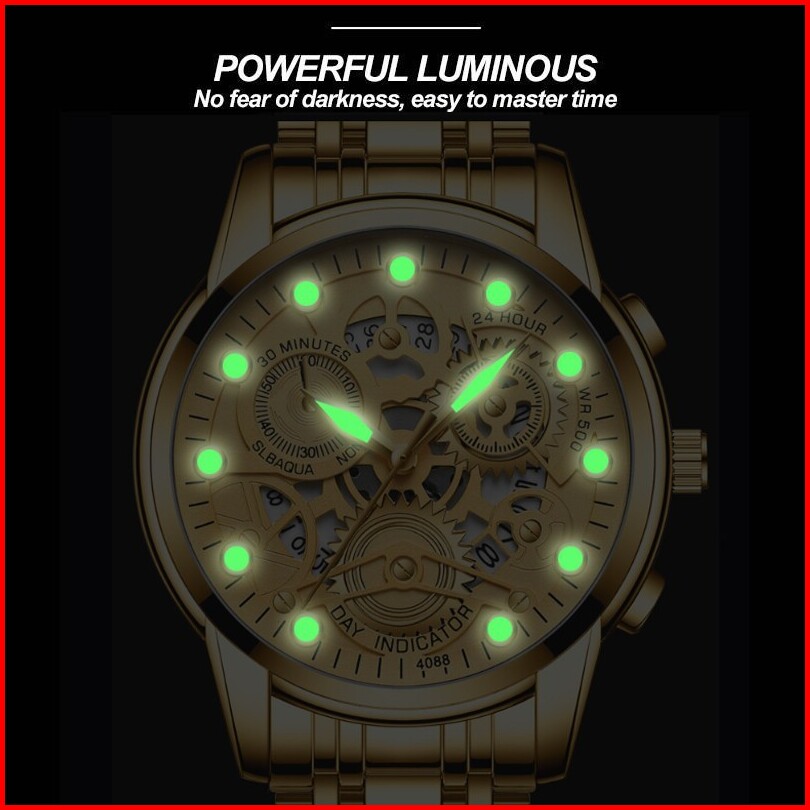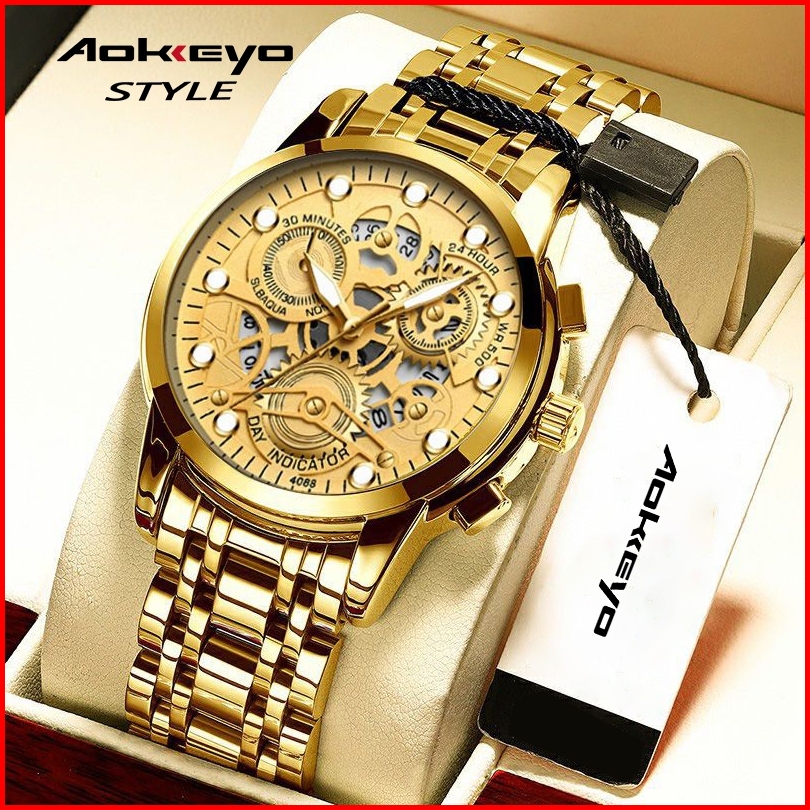Aokeyo Jam Tangan Pria 4088 Original Kuarsa Kalender Tali Stainless Steel Jam Tangan Cowok