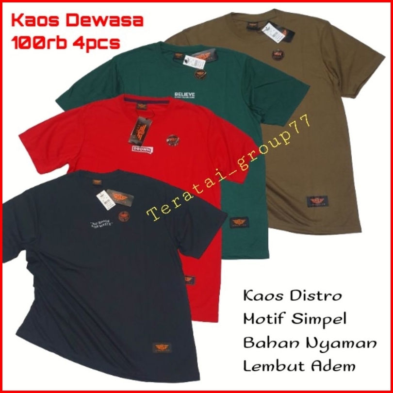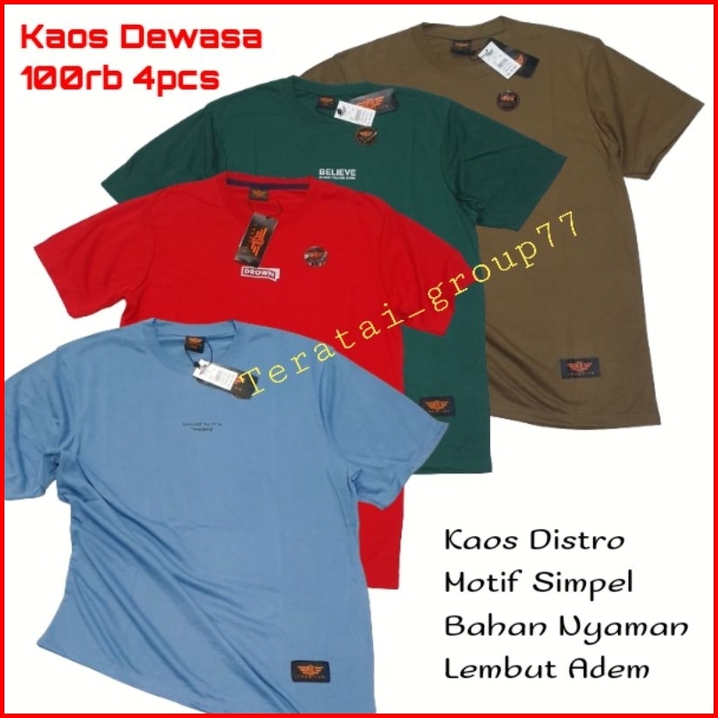 Paket 100 Ribu Dapat 4 Pcs Kaos Distro Pria Wanita Dewasa Lengan Pendek Baju Atasan Jumbo